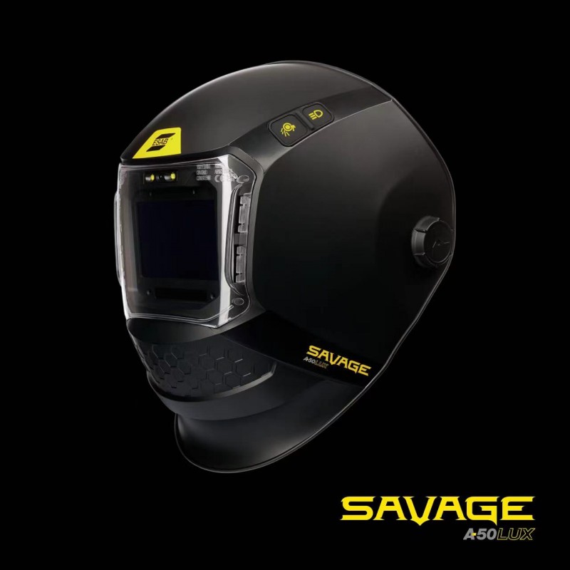 伊萨全新Savage A50 LUX具有集成式工作灯、全新设计的外壳、可快速装卸的前镜片以及简化的自动变光滤光器 (ADF) 用户界面。